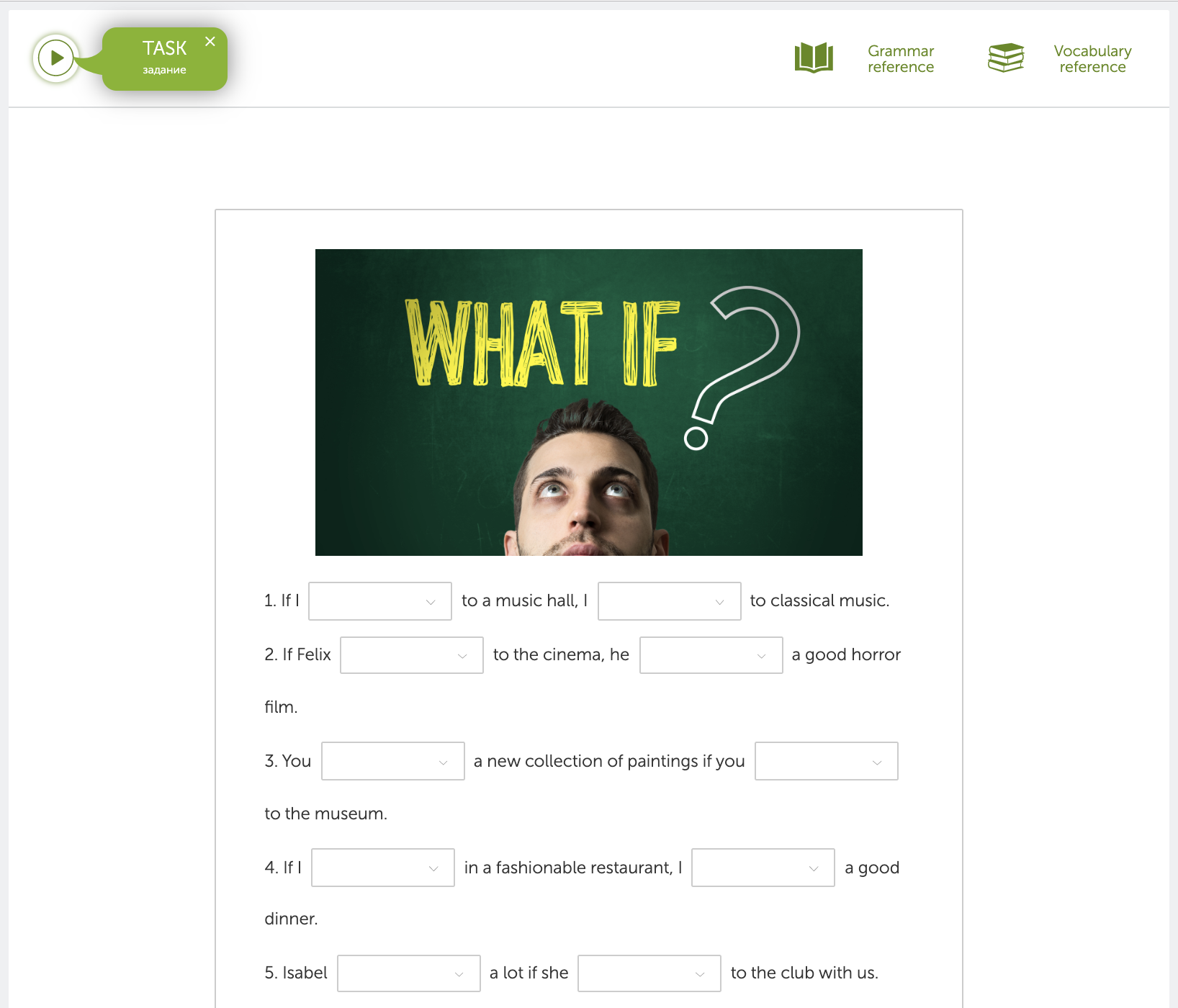 Для начала обучения в нашей онлайн-школе английского языка всё уже подготовлено на интерактивной платформе. От вас потребуется лишь стабильное интернет-соединение и устройство для занятий — наиболее удобным вариантом будет компьютер или планшет